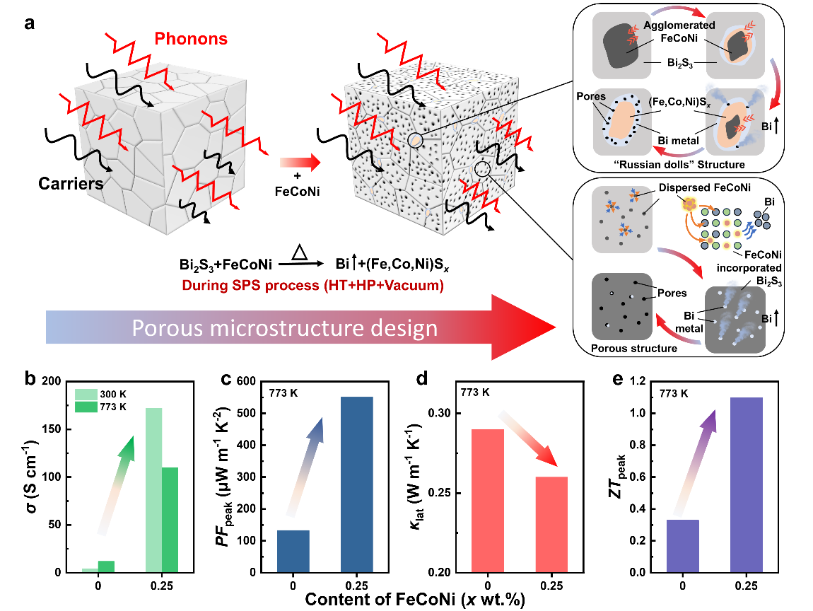 日前,昆明理工大学材料科学与工程学院金属先进凝固成形及装备技术国家地方联合工程研究中心葛振华、冯晶团队在硫化物热电材料性能调控方面取得重要进展。图1硫化铋热电材料中的多孔结构设计策略示意图及性能对比图首先是在硫化铋热电材料的多孔结构设计及热电性能提升方面取得重要进展,相关研究以《PorousBi2S3BulkWithExcellentThermoelectricPerformancebySolidStatesReplacementandLowMelting-PointMetal...