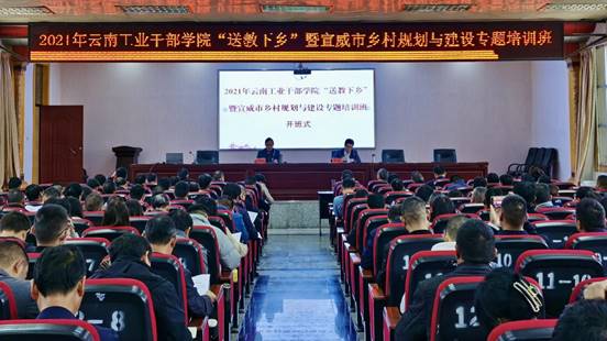 10月18日上午,由中共云南省委组织部主办,云南工业干部学院承办的云南省委组织部2021年“送教下乡”——宣威市乡村规划与建设专题培训班在宣威市委党校顺利开班。云南工业干部学院、中共宣威市委党校负责人出席开班式并讲话。宣威市“干部规划家乡行动”领导小组成员单位领导班子成员、相关科室负责人;各乡镇(街道)分管领导及部分村(社区)党组织书记等,共198人参加开班式。