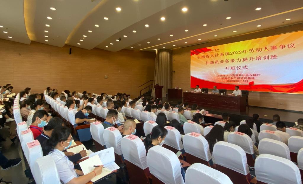 8月15日上午,云南省人社系统2022年劳动人事争议仲裁员业务能力提升专题培训班,在昆明理工大学呈贡校区云南工业干部培训基地开班。昆明理工大学党委副书记、云南工业干部培训基地常务副主任降富楼,云南省人力资源和社会保障厅党组成员、副厅长张金涛出席开班仪式并讲话。