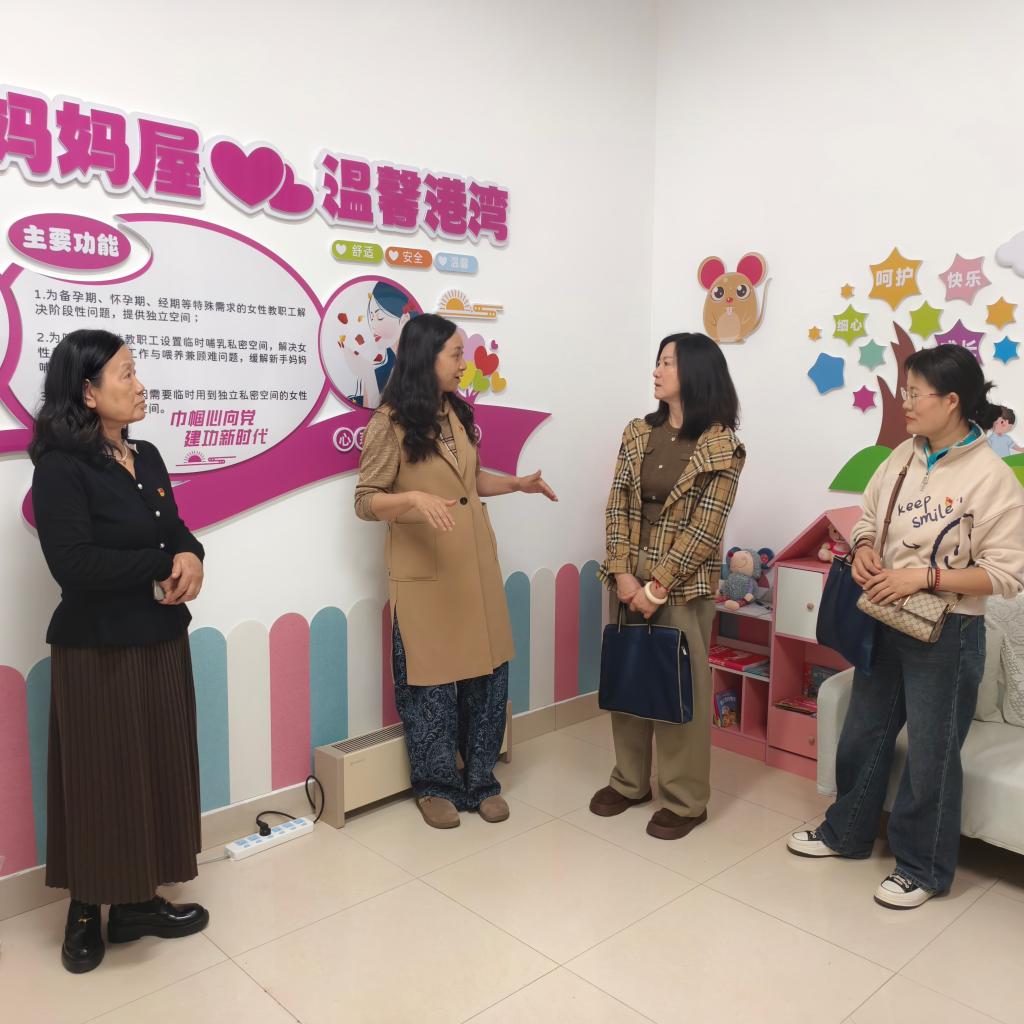 查验期间,校工会、校妇联主要负责人向检查组汇报了“爱心妈妈屋”的建设、使用情况以及未来规划。检查组进行了细致的实地核查,逐一查看了屋内的设施配置、物品清单,并对“爱心妈妈屋”的管理制度、环境卫生及安全措施等内容进行了现场询问与指导。