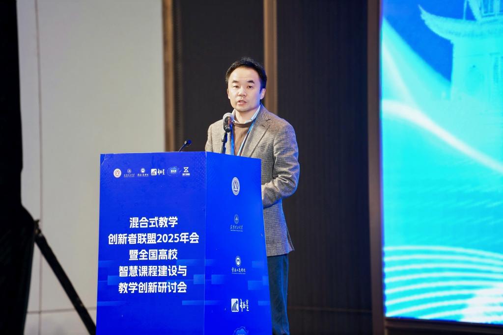 昆明理工大学副校长牛昱宇致开幕式辞。他表示,学校始终以“人工智能赋能教育教学”为核心发展方向,依托云南省人工智能重点实验室等优质平台,在智慧课程建设与混合式教学改革领域积累了丰富实践经验。此次承办全国性教育创新盛会,既是对学校教学改革成果的充分肯定,更是深化校际合作、共促教育数字化转型的重要契机,学校将以此为纽带,推动智慧教育理念与实践的广泛传播。