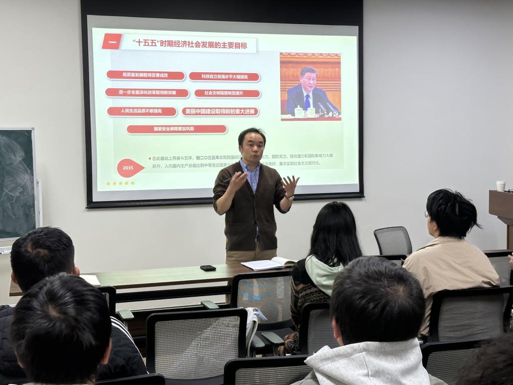 牛昱宇介绍了国家“十五五”规划的由来,阐述了“十五五”规划的主要目标、战略任务和重大举措,并结合自身的科学研究经历,重点强调了加快高水平科技发展和成果转化对于国家现代化建设的重要性。牛昱宇鼓励同学们将自身职业发展目标和国家发展战略需求相结合,学好自身专业知识、励志成才,为实现科技强国做贡献。