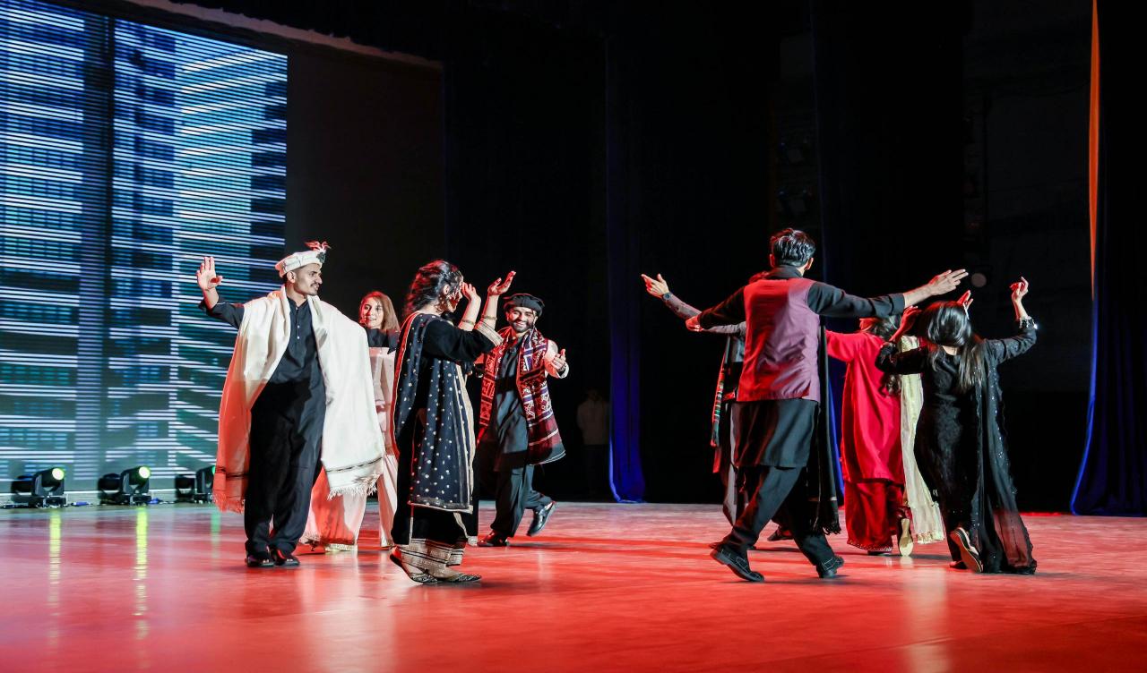 12月26日晚,昆明理工大学呈贡校区红土会堂灯火璀璨、欢声盈耳,以“青春逐梦,世界同辉”为主题的第十三届“红土情·世界风”中外师生文艺晚会在此举行。来自巴基斯坦、老挝、泰国、越南、孟加拉国、尼泊尔、蒙古等43个国家的留学生与学校师生同台演绎、共聚一堂,生动展现了文明交流互鉴的蓬勃生机,彰显了新时代中国高校推动构建人类命运共同体的积极作为。校党政领导陈华仙、蒋业华、刘殿文,相关职能部门负责人出席活动。