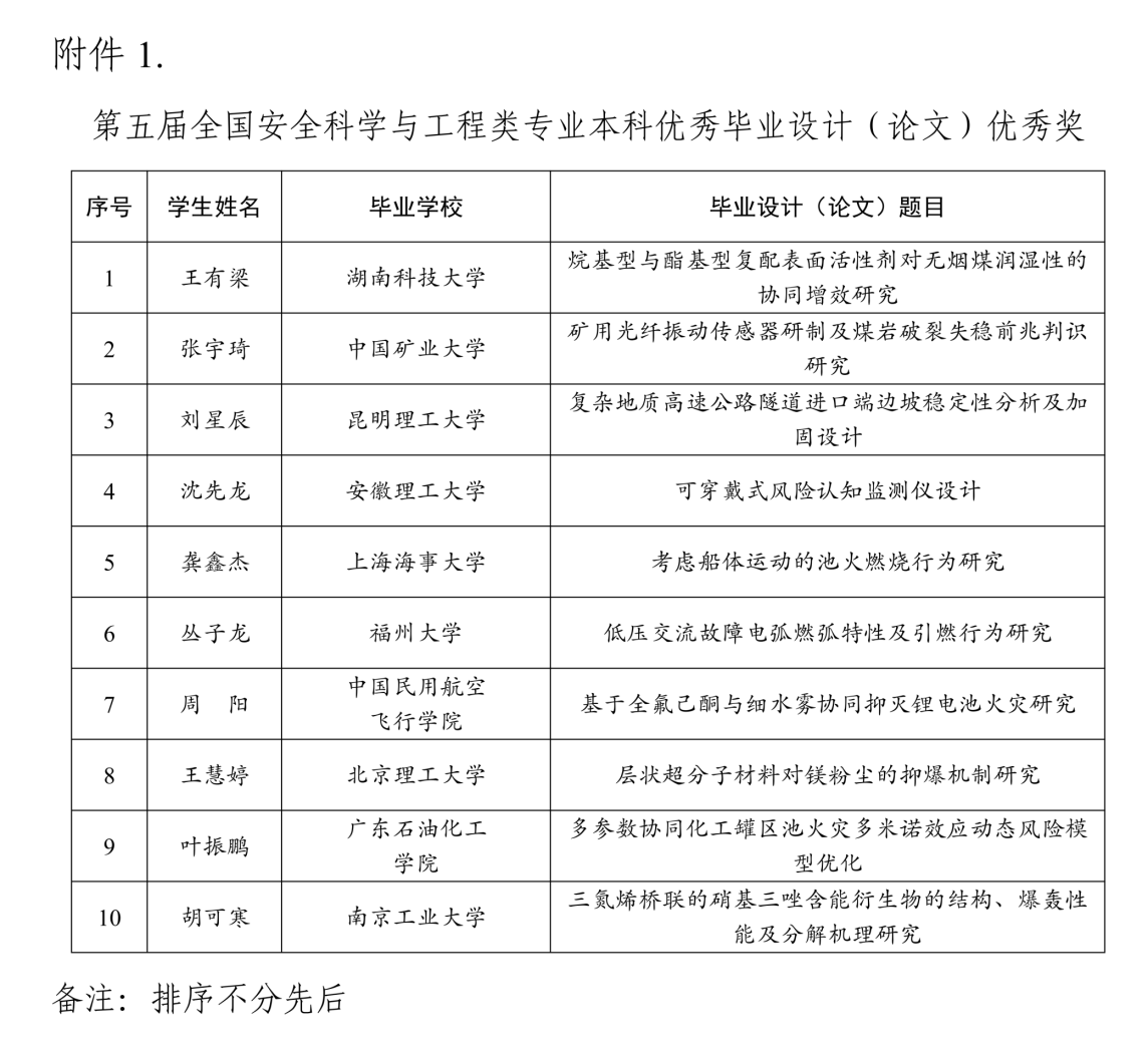 该评选由国家安全科学与工程研究院组织,旨在提高安全科学与工程本科专业人才培养质量。评选采用双盲分组评审、专家组会评的严格筛选机制。此次从全国众多高校申报的优秀毕业设计(论文)中评选出10篇优秀奖、17篇提名奖。