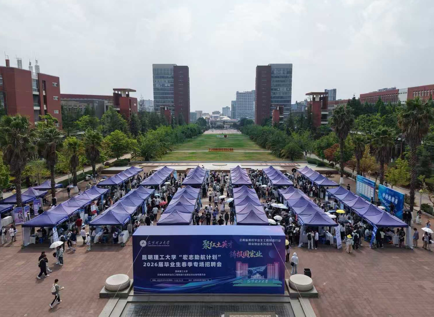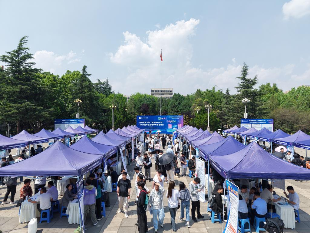 为进一步落实“中央专项彩票公益金宏志助航计划”工作要求,4月23日至24日,昆明理工大学“宏志助航计划”2026届毕业生春季专场招聘会分别在呈贡校区和莲华校区举办。本次活动由昆明理工大学与云南省工程制造行业就指委联合举办。招聘会举办期间,同步开展“才聚江西 智荟赣鄱”江西省2026年上半年产业链组团引才活动。昆明理工大学党委常委、副校长李祖来,江西省人力资源和社会保障厅二级巡视员谢小贵参加活动。