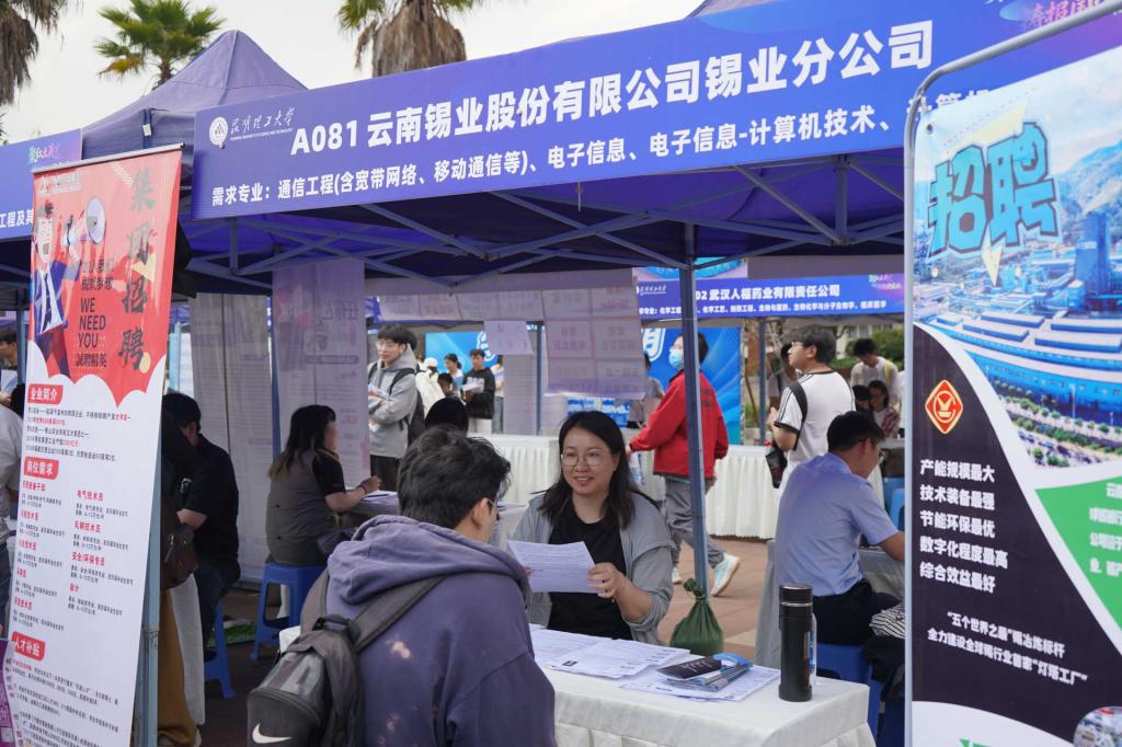 本次招聘会吸引到江西赣州、浙江金华、江苏昆山、安徽六安等地人社部门携当地优质企业组团参会,云南本土专精特新企业和行业骨干及来自长三角、珠三角等经济活跃地区的重点企业也踊跃参加,共计有350余家单位参会,涵盖有色金属、新能源、新材料、机械制造、信息软件、生物医药等多个行业领域,为毕业生提供丰富的岗位资源。