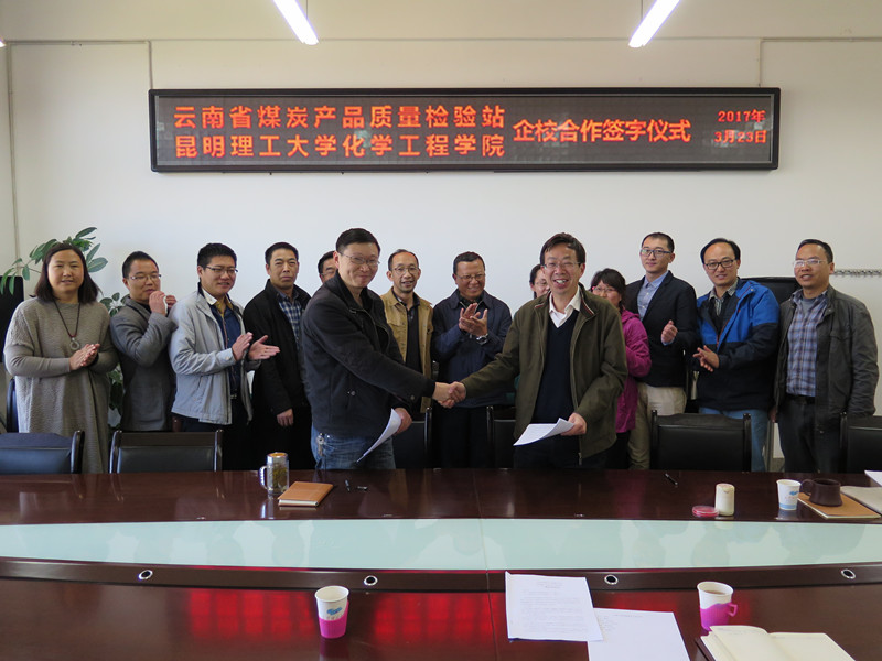 近日,云南省煤田地质局副局长罗俊,云南省煤炭产品质量监督检验站站长王宗礼一行到昆明理工大学化学工程学院,与学院党政领导、相关专业负责人进行合作洽谈。双方就煤炭及其相关产品的分析检测、合作开展人员培训、共同建立煤化工专业实习基地和出版煤化工实验教材、协作申报科研课题、建立省级工程研究中心等方面达成共识,并签订了校企合作协议,会后双方将尽快对具体合作项目进行详细对接。