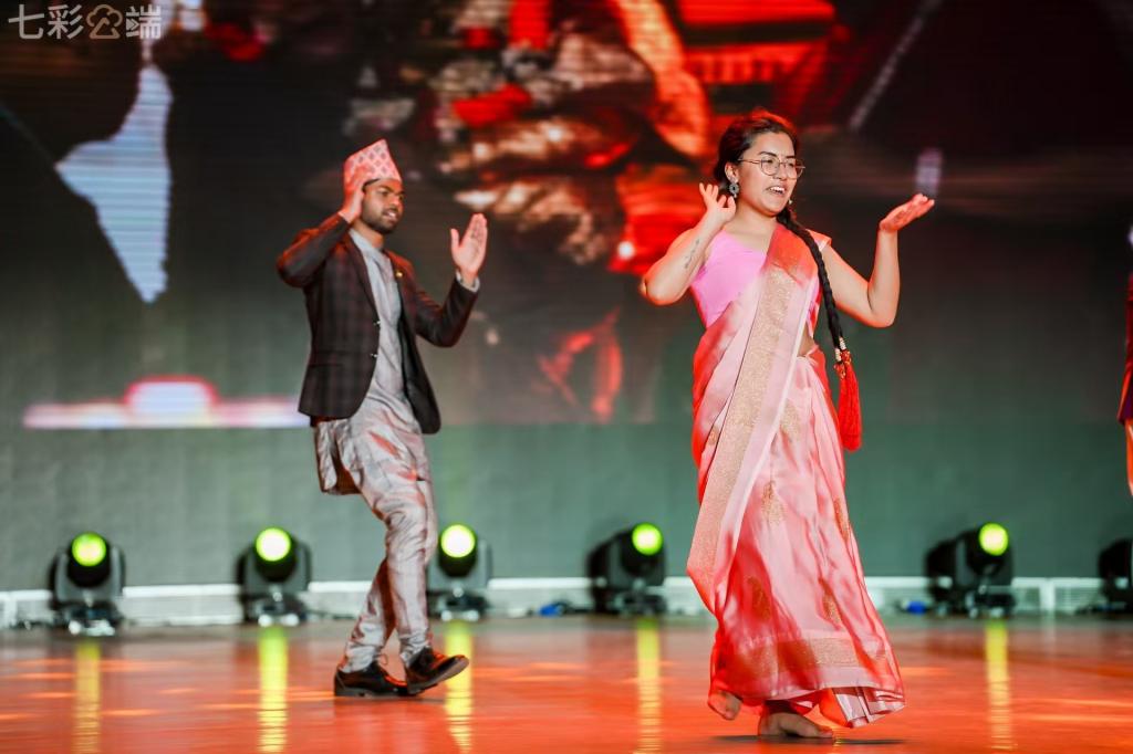 开场服装秀《青春逐梦,世界同辉》融汇多国服饰元素,以绚烂多彩的视觉语言,传递出携手前行、共赴未来的美好期许。随后,老挝舞蹈《欢舞少年郎》、孟加拉歌伴舞《孟加拉欢歌》、尼泊尔民族舞《热情尼泊尔》、巴基斯坦舞台表演《丝路新跃》、蒙古舞蹈《托林胡尔》、越南歌伴舞《我的越南》、泰国舞蹈《烛光守夏》、中国学生演绎的舞蹈《稻浪间的振兴欢歌》等节目轮番上演,生动展现了各国独特的艺术风情与文化底蕴。