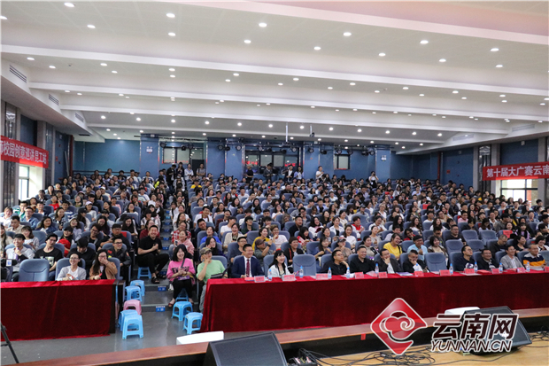 云南网讯(记者 党一郡)5月8日下午,2018第十届全国大学生广告艺术大赛(简称“大广赛”)云南赛区暨第九届云南省“大广赛”启动式暨名家名师校园创意巡讲活动在昆明理工大学拉开帷幕。本届“大广赛”的主题为“创意我闪耀”,昆明站的巡讲活动由“大广赛”云南赛区组委会主办,昆明理工大学艺术与传媒学院承办。来自昆明理工大学、云南师范大学、云南民族大学等省内十余所高校近450名师生参加了本次活动。