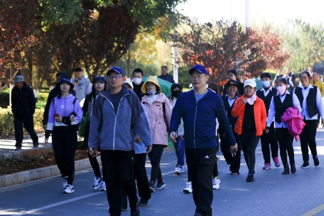 张英杰书记打响信号枪后,教职工们从2号体育场出发,途径办公大楼、建筑工程学院、后勤1号楼、1号体育场、图书馆、憬园、机电工程学院,总共完成两圈,全程约6公里。教职工们步伐矫健、热情高涨、氛围轻松愉悦,人形队伍形成靓丽的校园风景线。