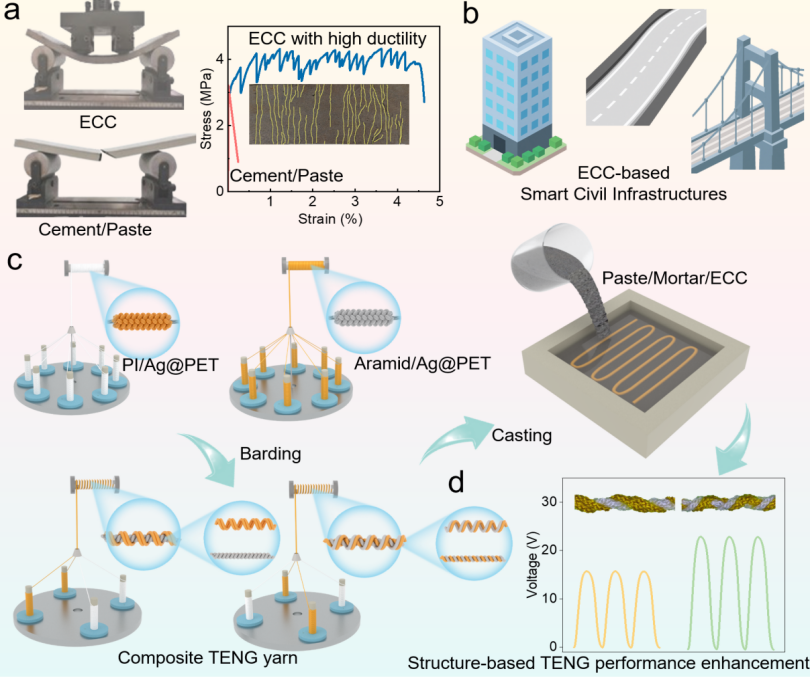 本研究创新性地将摩擦电能量收集功能与ECC材料深度融合,开发出兼具自主发电与实时传感能力的新型复合材料,为基础设施智能化发展提供了全新思路。