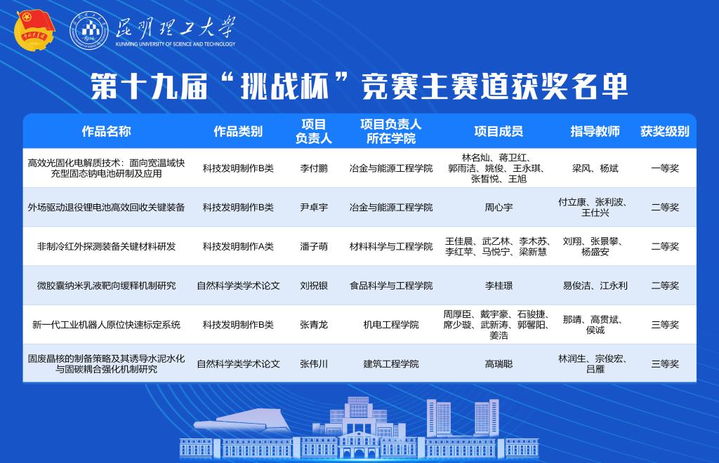 学校高度重视一流创新人才培养,昆工学子在本届竞赛主体赛与两项专项赛中均展现出强劲的创新实力与科研水平,延续了学校在“挑战杯”竞赛中的优异成绩。