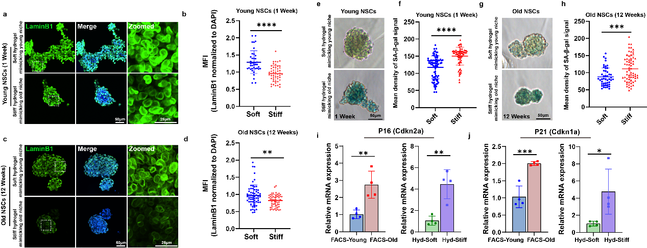 图4. 模拟衰老海马微环境硬度的水凝胶诱导神经干细胞衰老表型