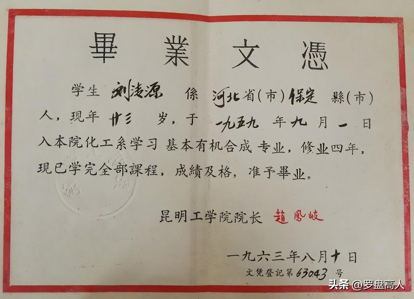 1963年昆明工学院毕业文凭