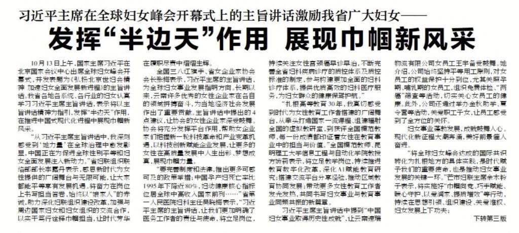 云南日报 习近平主席在全球妇女峰会开幕式上的主旨讲话激励我省广大妇女——发挥“...