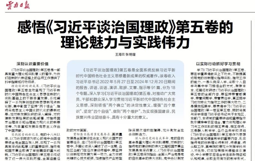 云南日报 感悟《习近平谈治国理政》第五卷的理论魅力与实践伟力