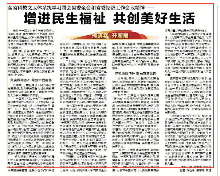 云南日报 全省科教文卫体系统学习领会省委全会和省委经济工作会议精神——增进民生...
